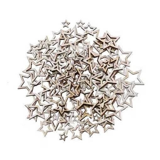 Decorațiune din lemn pentru scrapbooking - Stele mici 3 cm, 100 bucăți