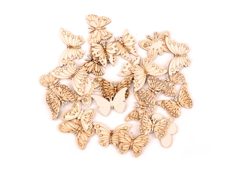 Decorațiune din lemn pentru scrapbooking - Fluturi din lemn, 20 bucăți