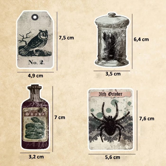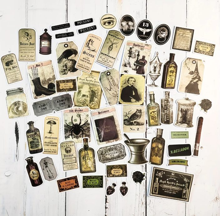 • 50 de motive diferite – poțiuni, etichete, ilustrații gotice.