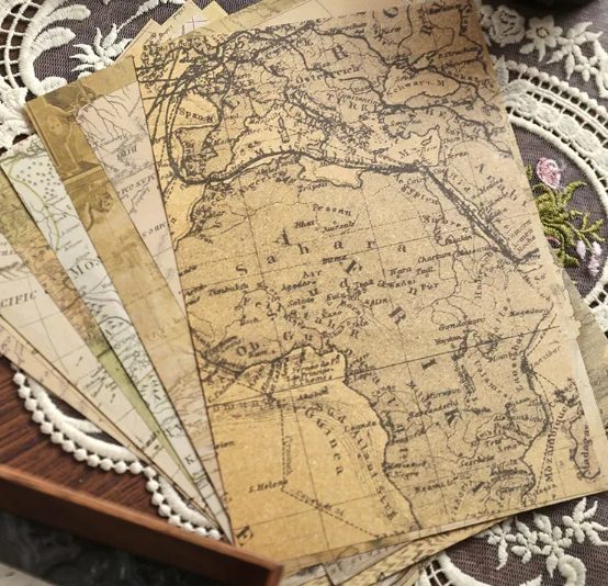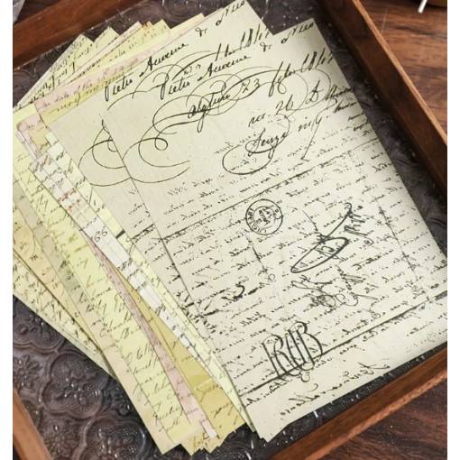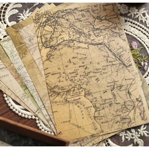 Colecție de hârtie frumos lucrată cu motive vintage – hărți vechi, litere scrise manual și flori delicate. Ideală pentru iubitorii stilului literar și vechi, care își doresc să creeze proiecte originale.