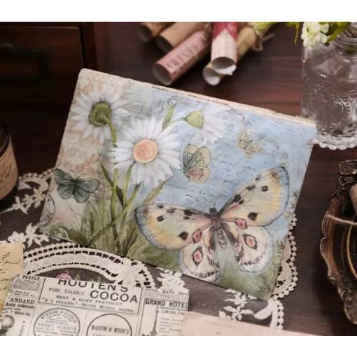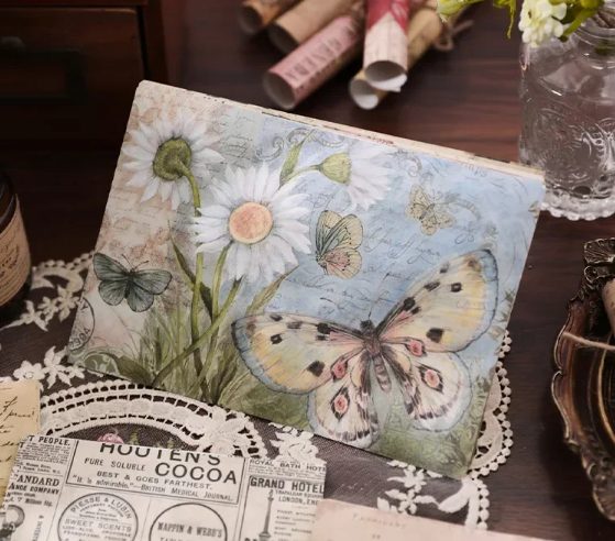 Colecție de hârtie frumos lucrată cu motive vintage – hărți vechi, litere scrise manual și flori delicate. Ideală pentru iubitorii stilului literar și vechi, care își doresc să creeze proiecte originale.