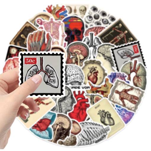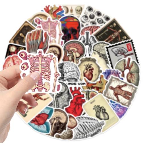 Setul original de 50 autocolante retro cu motive științifice și anatomice, care îți vor adăuga un aspect unic obiectelor tale. Autocolantele sunt fabricate din PVC rezistent, sunt rezistente la apă și se lipesc și se dezlipesc cu ușurință fără a lăsa urme.