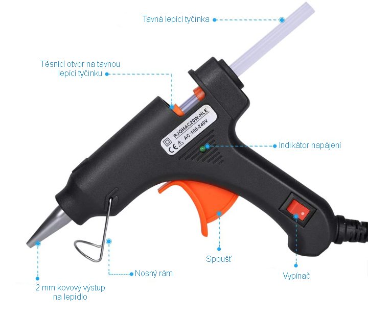 Practic un mini pistol de lipit cu o putere de 20W, care se încălzește în 3 – 5 minute și menține o temperatură constantă pentru utilizare confortabilă și sigură. Datorită designului său compact, este ideal pentru reparații acasă, creații creative și mici proiecte de bricolaj.