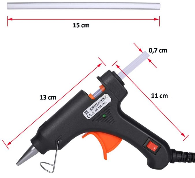 - Dimensiunea pistolului de lipit: 13 x 11 cm (vezi fotografiile produsului).