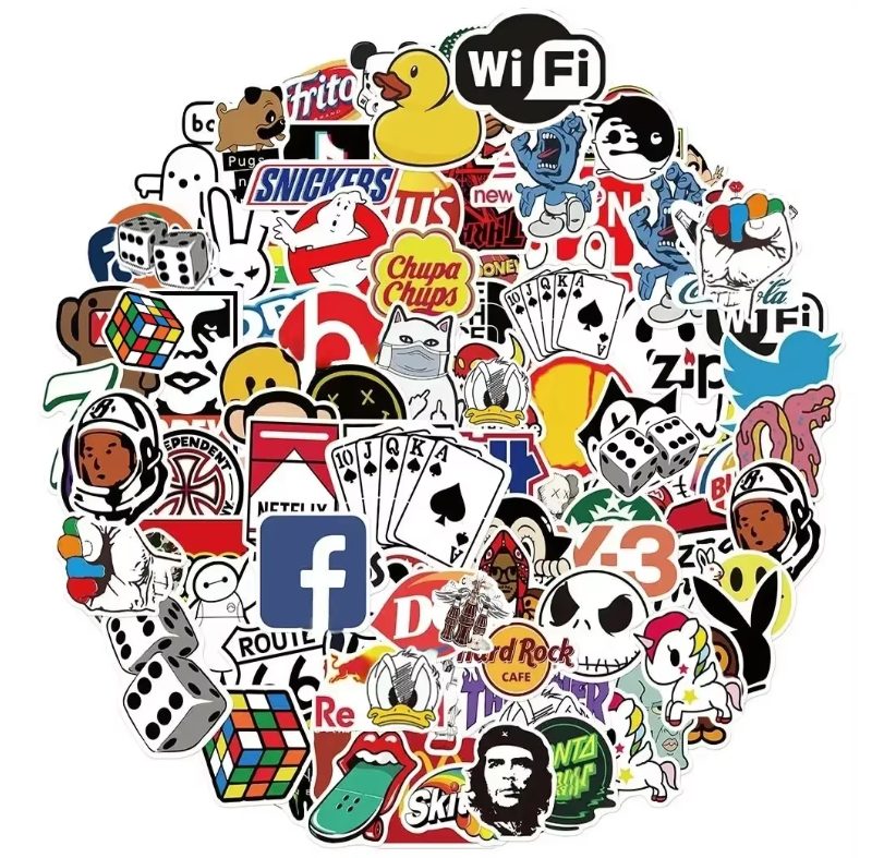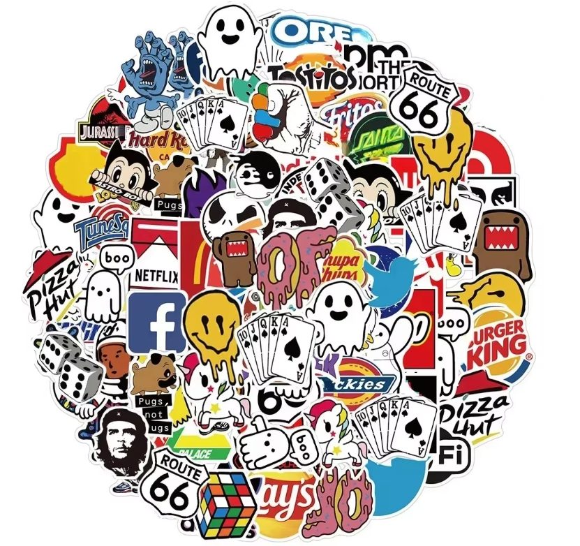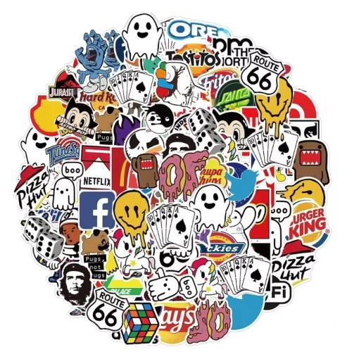 Set original de 106 autocolante cu motive de fashion, brand și logo, care oferă un aspect unic lucrărilor tale. Autocolantele sunt fabricate din PVC rezistent, sunt rezistente la apă și se lipesc și se îndepărtează ușor fără a lăsa urme.