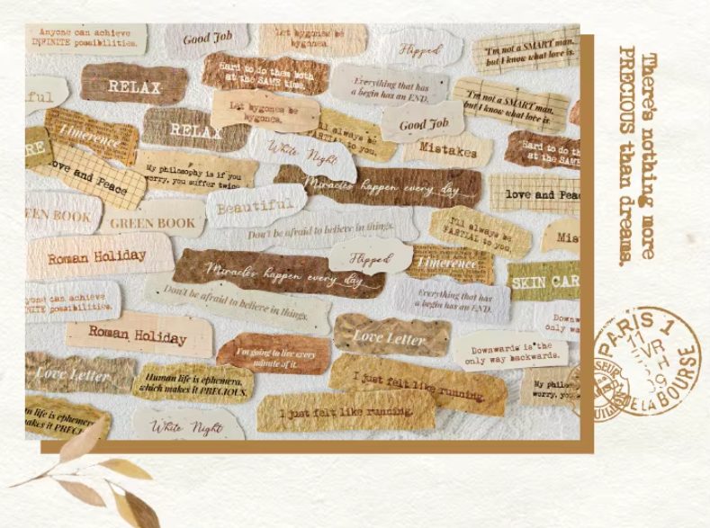 Set original de 50 de autocolante cu teme textuale, care oferă un aspect unic obiectelor dumneavoastră. Autocolantele sunt fabricate din hârtie ecologică cu o textură granulată.