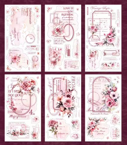 Autocolante Vintage cu flori - Roz, 6 bucăți