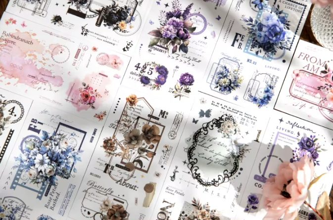 Set original de 6 tipuri de autocolante cu motive vintage florale, care vor oferi un aspect unic obiectelor tale. Autocolantele sunt fabricate din bandă Washi rezistentă.