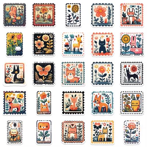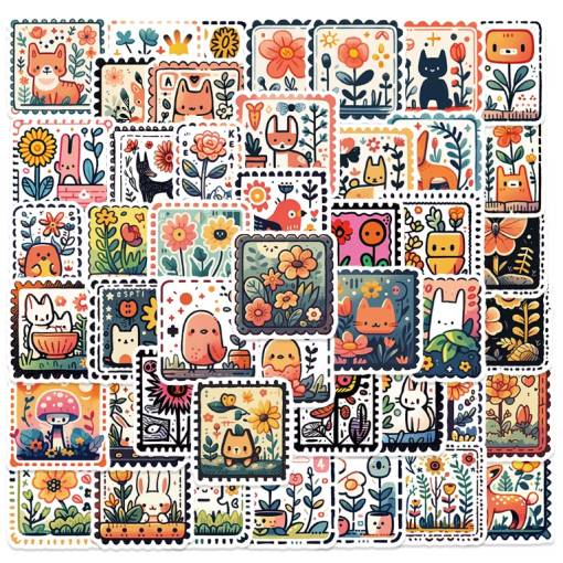 Set original de 50 de autocolante cu motive retro cu animale, care oferă un aspect unic obiectelor tale. Autocolantele sunt fabricate din PVC rezistent, sunt impermeabile și se lipesc și se dezlipesc ușor fără a lăsa urme.