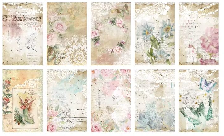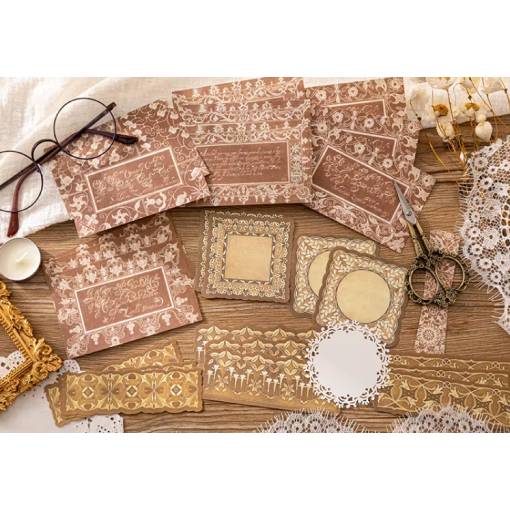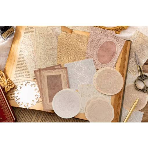 Pătrunde în lumea magică a scrapbook-ului vintage cu acest set 30 de bucăți de hârtie decorativă dantelată! Fiecare foaie este atent concepută pentru a aduce o notă romantică atrăgătoare proiectelor tale — ideală ca bază, decorațiune sau ornament pentru jurnale, albume, carduri sau alte lucrări creative.