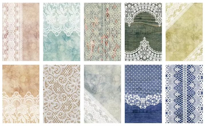 Stil: vintage, motive dantelate, texturi fine potrivite pentru proiecte romantice și nostalgice.
