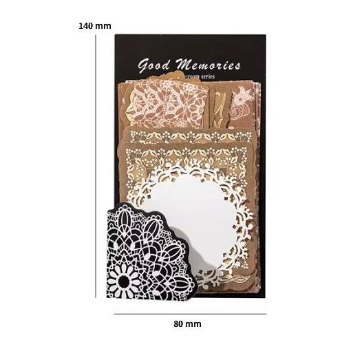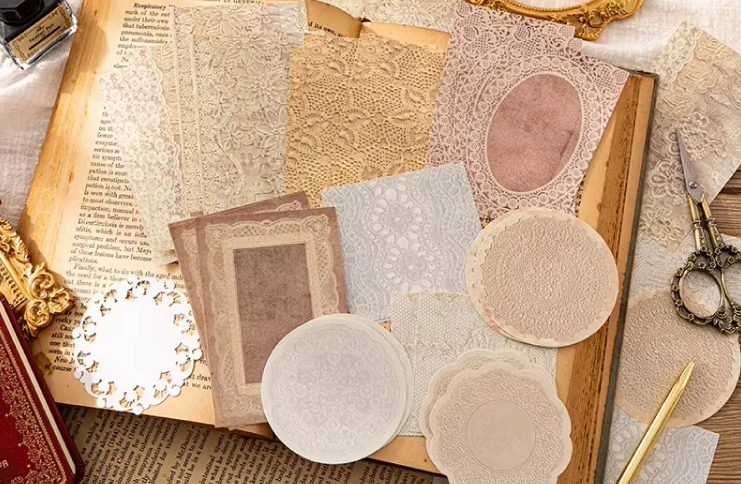 Pătrunde în lumea magică a scrapbook-ului vintage cu acest set 30 de bucăți de hârtie decorativă dantelată! Fiecare foaie este atent concepută pentru a aduce o notă romantică atrăgătoare proiectelor tale — ideală ca bază, decorațiune sau ornament pentru jurnale, albume, carduri sau alte lucrări creative.