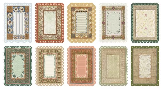 Revitalizați-vă proiectele de hârtie cu un stil vintage elegant cu acest set de 10 mari hârtii decorative dantelată. Fiecare foaie este proiectată cu un simț al detaliului și aduce un aspect rustic, romantic, fiind ideală pentru jurnale, albume, jurnale bullet, felicitări și alte creații creative.