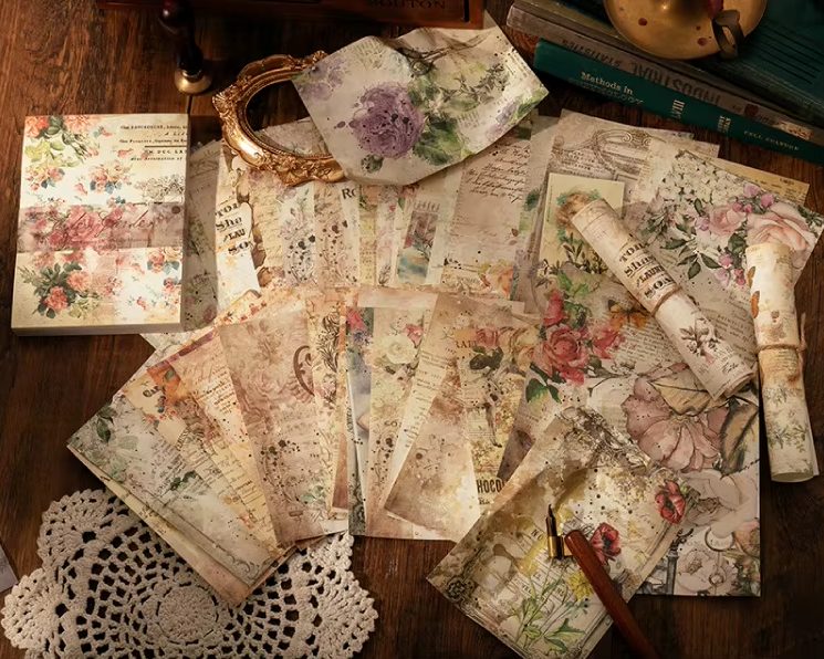 Adăugați frumusețea eleganței florale în proiectele dumneavoastră cu acest pachet 100 de hârtii decorative cu un motiv vintage delicat. Aceste foi sunt ușor de scris, ideale ca fundal pentru jurnale, pentru scrapbooking, decorare sau realizarea de felicitări.