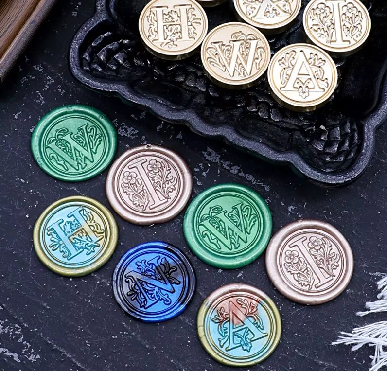 Fiecare stampă are un design retro unic și îți permite să creezi un sigiliu personalizat cu inițiala dorită.