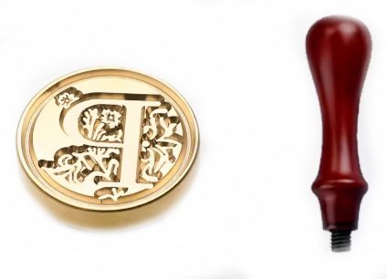 Pachetul include un timbru cu mâner din lemn.