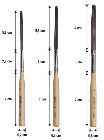 - Utilizare: acuarelă, acril, ulei, cerneală