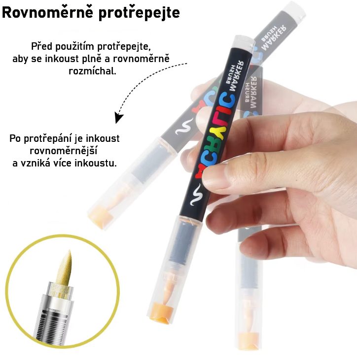 Tip: înainte de utilizare, agitați fiecare marker uniform pentru ca vopseaua să se amestece bine și să deseneze uniform.