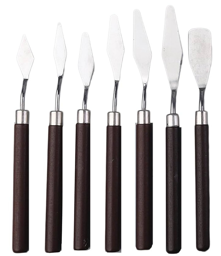 Setul conține 7 spatule profesionale pentru pictură, care sunt potrivite pentru amestecarea și aplicarea diferitelor tipuri de culori.