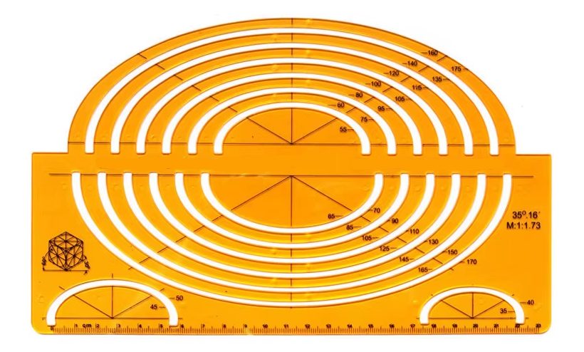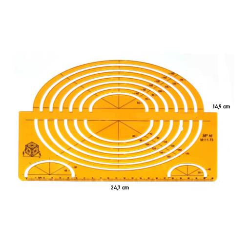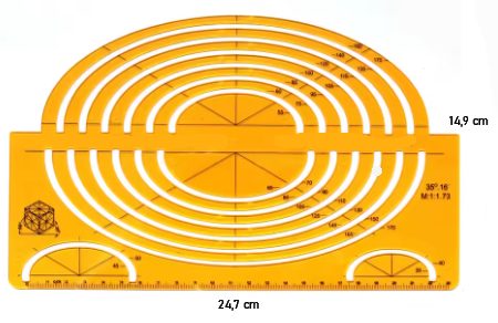 Permite aranjarea precisă a formelor circulare și ovale în dimensiuni variate și servește de asemenea ca riglă clasică.