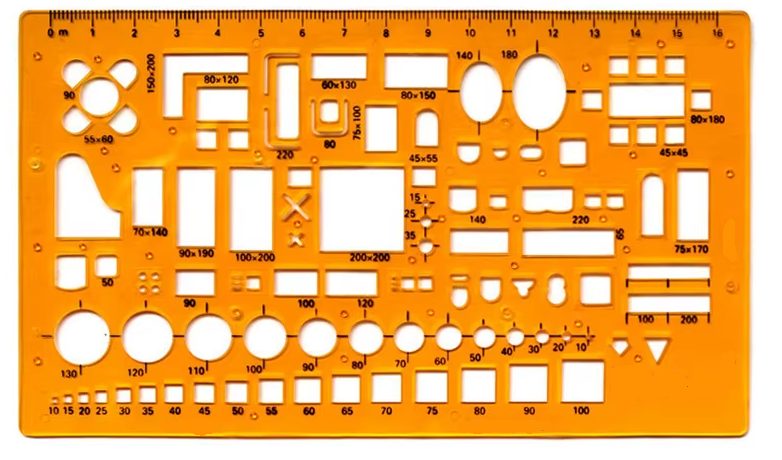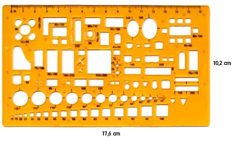 Permite aranjarea precisă a formelor circulare și ovale în dimensiuni variate și servește de asemenea ca riglă clasică.