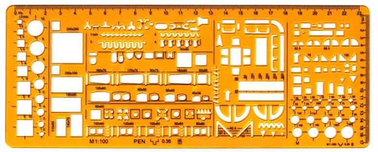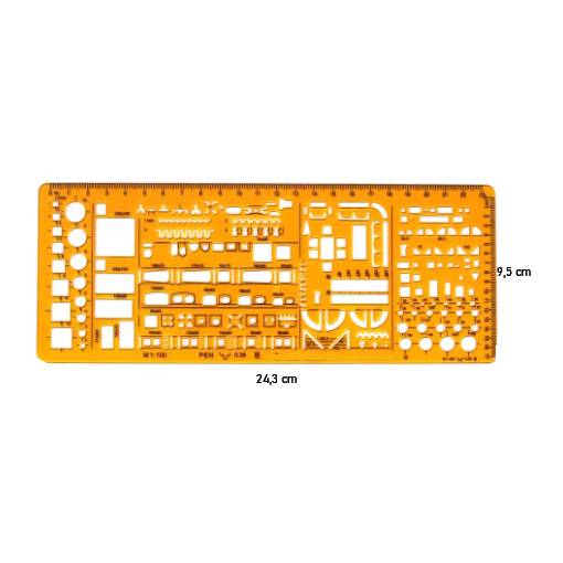 Permite o aranjare precisă a formelor circulare și ovale în diverse dimensiuni și de asemenea servește ca riglă clasică.