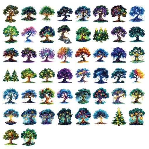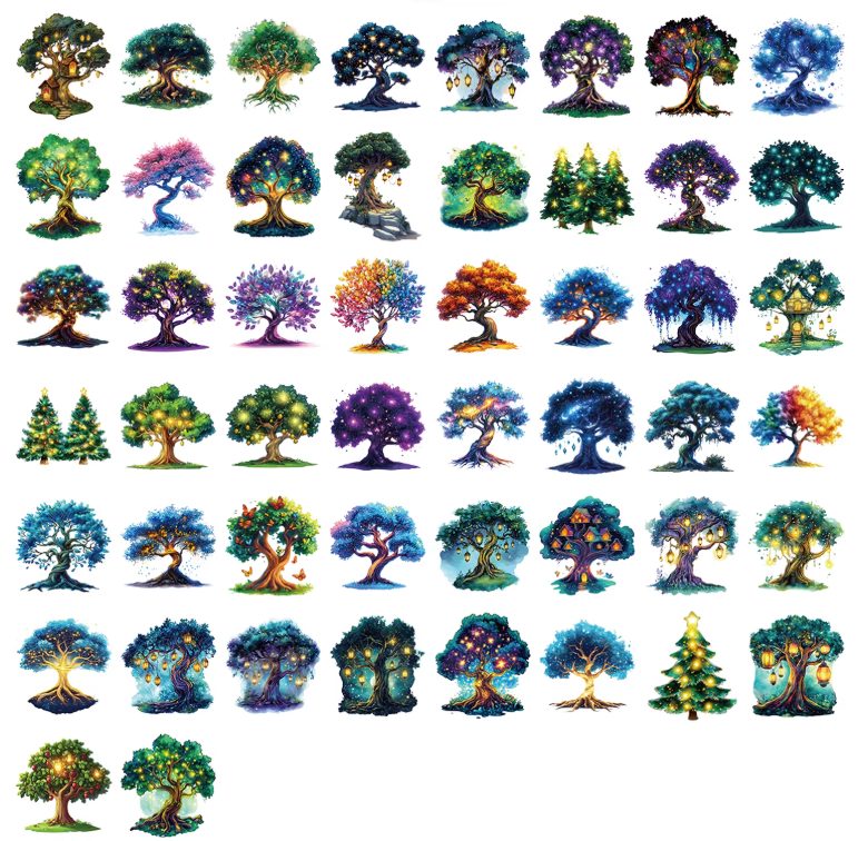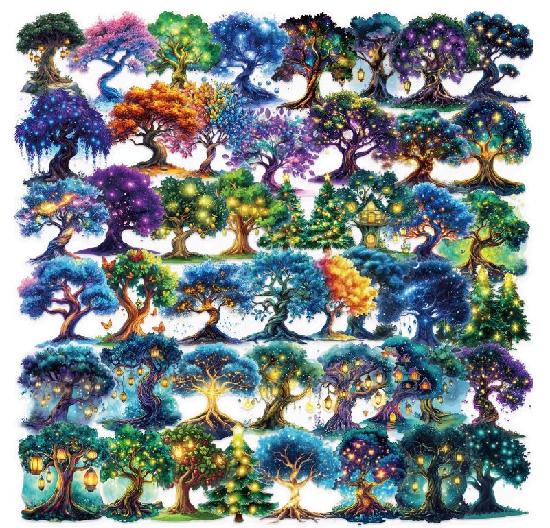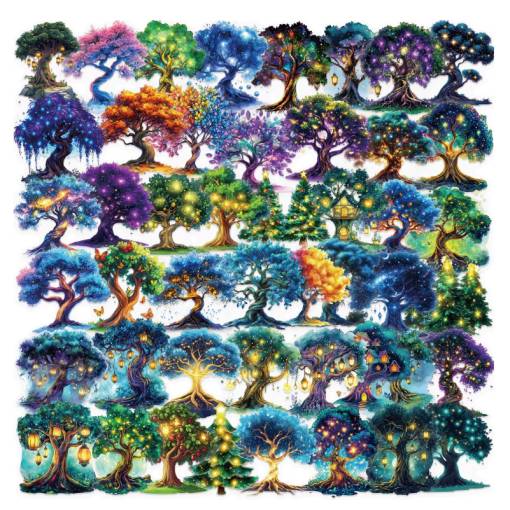 Încetează-ți proiectele creative cu un strop de magie. Setul de 50 de autocolante cu tema unui copac fermecat te va încânta prin detalii delicate și o atmosferă de poveste.