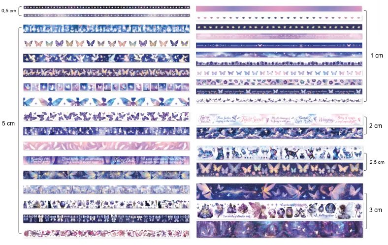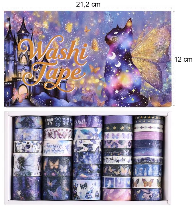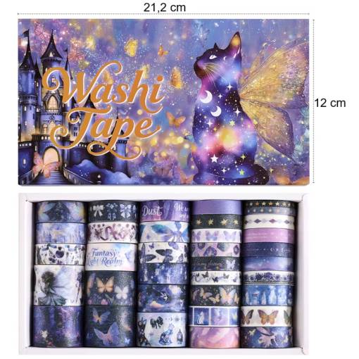Încercați să vă adânciți în lumea fanteziei și creativității cu banda decorativă washi. Această bandă elegantă de fantezie este un accesoriu ideal pentru orice jurnal, planificator sau scrapbook. Adăugați o notă delicată proiectelor dumneavoastră și dați-le viață într-un mod original.</p>